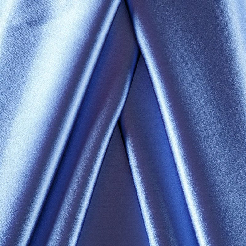 Итальянский костюмно-плательный атлас ватуссо сине-голубого оттенка. Ткань плотная, но пластичная, хорошо держит форму и отлично тянется, собирается в красивые складки и драпировки. Почти не мнется, очень удобный и практичный. Блеск умеренный, смотрится дорого, благородно. Подойдет для пошива прямых силуэтов-футляров, приталенных платьев с пышной юбкой и крупными драпировками, изделий с заложенными складками, нарядных изделий, вечерних костюмов, летнего пальто, юбки, для изготовления корсетов.