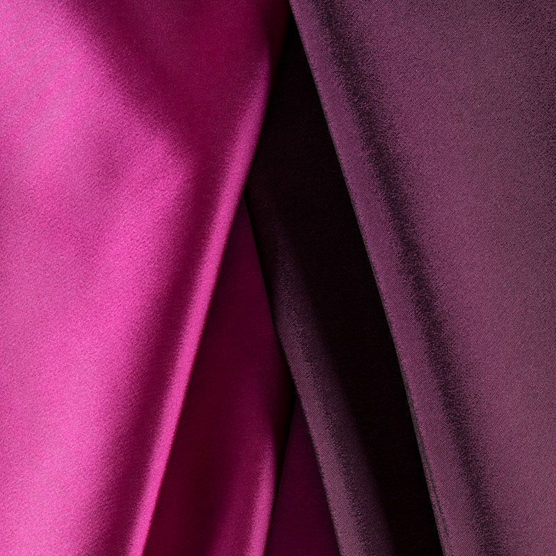 Итальянский костюмно-плательный атлас ватуссо яркого цвета фуксии. Ткань плотная, но пластичная, хорошо держит форму и отлично тянется, собирается в красивые складки и драпировки. Почти не мнется, очень удобный и практичный. Блеск умеренный, смотрится дорого, благородно. Подойдет для пошива прямых силуэтов-футляров, приталенных платьев с пышной юбкой и крупными драпировками, изделий с заложенными складками, нарядных изделий, вечерних костюмов, летнего пальто, юбки, для изготовления корсетов.