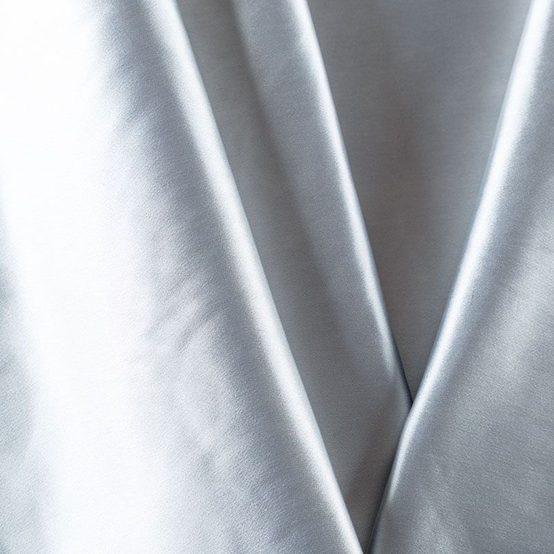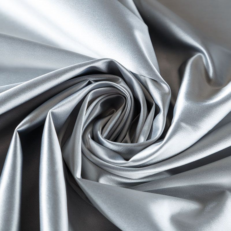 Итальянский костюмно-плательный атлас ватуссо серебристо-серого оттенка. Ткань плотная, но пластичная, хорошо держит форму и отлично тянется, собирается в красивые складки и драпировки. Почти не мнется, очень удобный и практичный. Блеск умеренный, смотрится дорого, благородно. Подойдет для пошива прямых силуэтов-футляров, приталенных платьев с пышной юбкой и крупными драпировками, изделий с заложенными складками, нарядных изделий, вечерних костюмов, летнего пальто, юбки, для изготовления корсетов.