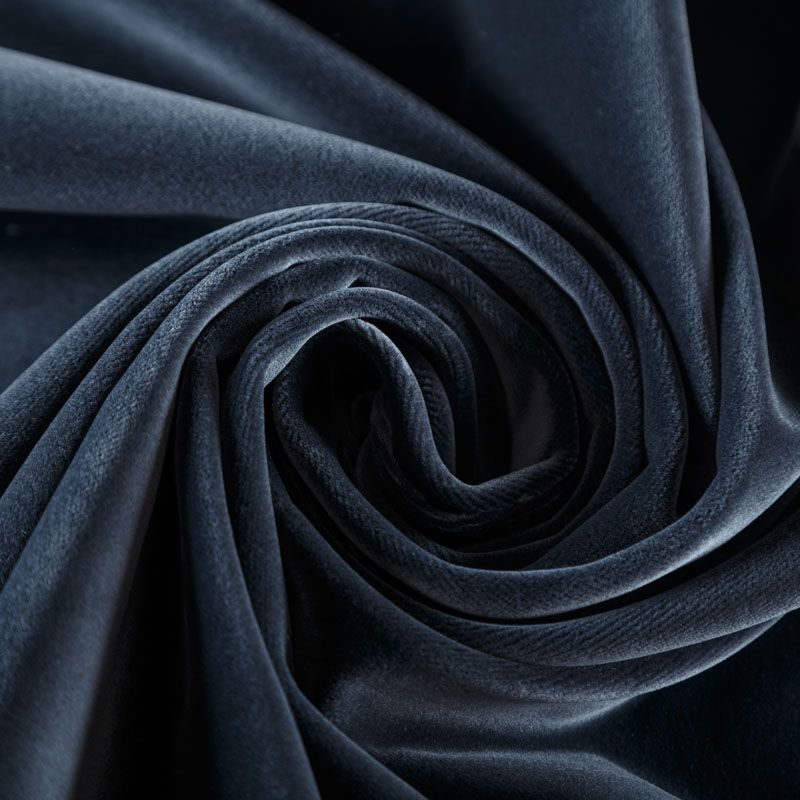 Хлопковый итальянский бархат синего оттенка. Ткань плотная, мягкая с коротким ворсом. Не грубая, хорошо драпируется. Имеет благородный матовый оттенок. Подойдет для пошива нарядного костюма, жакета, юбки, жилета, шорт, комбинезонов, брюк, платья-футляр, легкого пальто или бомбера.