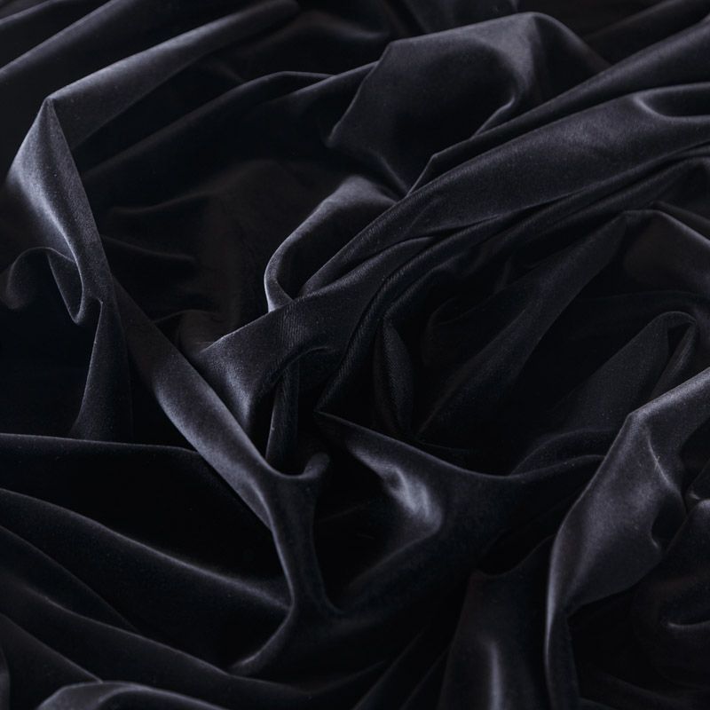 Хлопковый итальянский бархат глубокого серого оттенка. Ткань плотная, мягкая с коротким ворсом. Не грубая, хорошо драпируется. Имеет благородный матовый оттенок. Подойдет для пошива нарядного костюма, жакета, юбки, жилета, шорт, комбинезонов, брюк, платья-футляр, легкого пальто или бомбера.