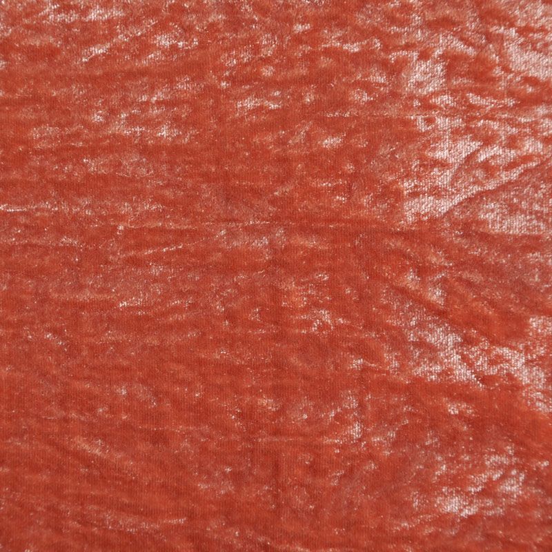 Итальянский бархат на шелковой основе в эффектном терракотовом оттенке. Ткань легкая, пластичная, мягкая, с коротким и блестящим ворсом, имеющим направление, очень приятная на ощупь, прекрасно драпируется. Подойдет для платья, юбки, туники, блузки, комбинезона, свободных брюк и костюма свободного кроя.