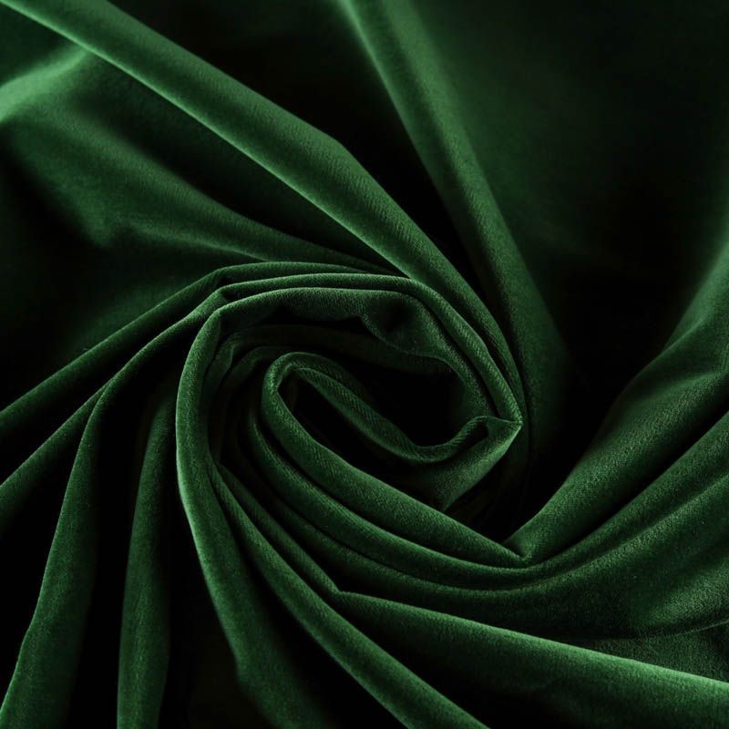 Плотный итальянский бархат из хлопка сочного зеленого цвета с добавлением эластана. Ткань очень приятная на ощупь, пластичная, поверхность матовая, держит форму, прочная, износостойкая. Идеально подойдет для костюма, жакета, юбки, жилета, комбинезона, брюк, платья-футляра.