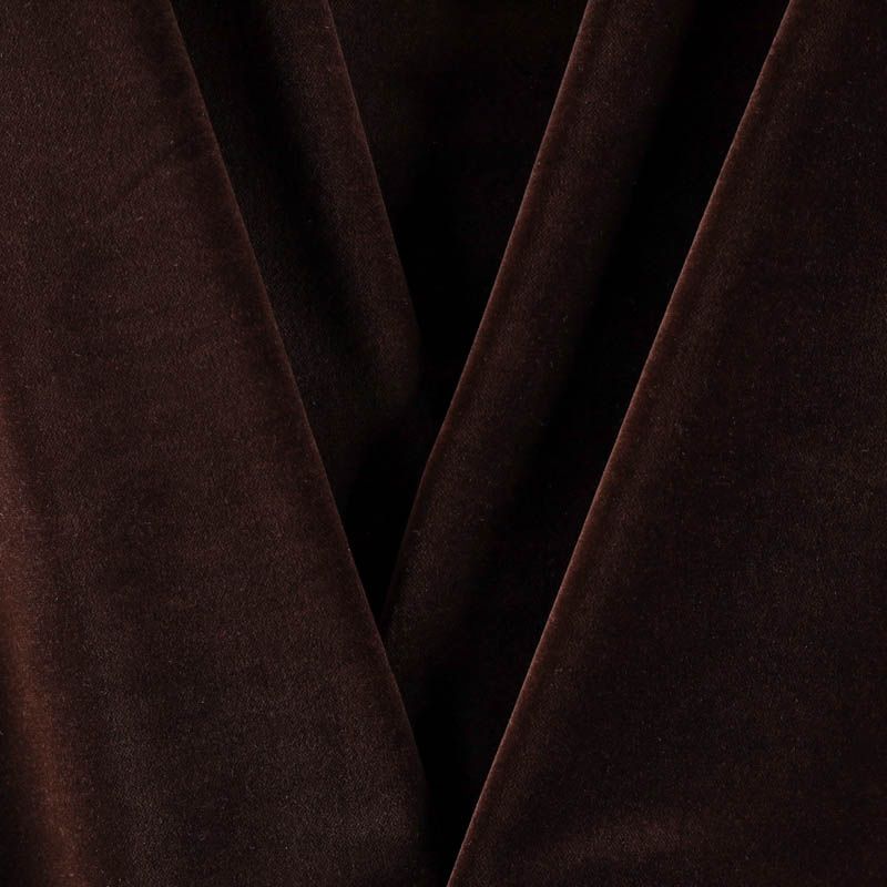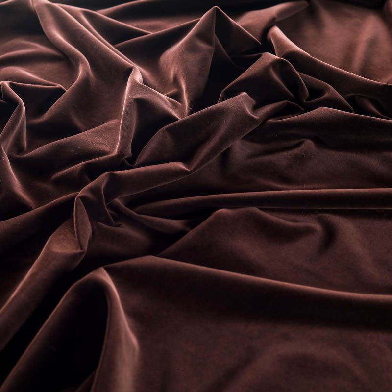 Хлопковый итальянский бархат темно-каштанового цвета. Ткань плотная, мягкая с коротким ворсом. Не грубая, хорошо драпируется. Имеет благородный матовый оттенок. Подойдет для пошива нарядного костюма, жакета, юбки, жилета, шорт, комбинезонов, брюк, платья-футляр, легкого пальто или бомбера.