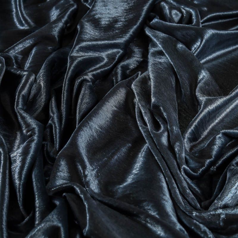 Бархат с небольшим ворсом благородного серого оттенка с эффектом люрекса. Ткань очень приятна на ощупь, не мнется, мягкая, нежная, хорошо тянется и драпируется. Цвет играет отблесками и полутонами. Бархат идеально подходит для пошива вечерних платьев, юбок, костюмов, а также стильных аксессуаров.