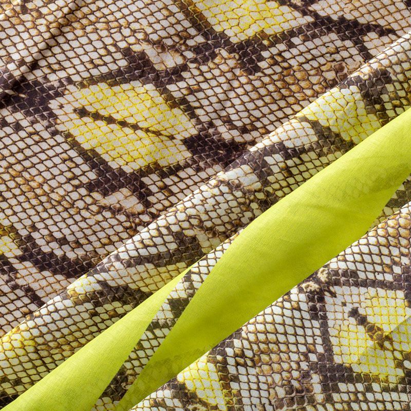 Итальянский хлопковый батист-купон с анималичтическим модным принтом в бежево-коричневых тонах. По краям купона, направленного по длине рулона, расположены по две полоски желтого оттенка.  Ткань очень легкая, прозрачная, приятная на ощупь, нежная, пластичная, хорошо и мягко драпируется, летящая. Батист подойдёт для модных блуз с объёмными рукавами, летних платьев и сарафанов с длинной летящей юбкой, прозрачных рубашек, декорированных объёмными бантами, туник и топов.