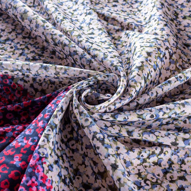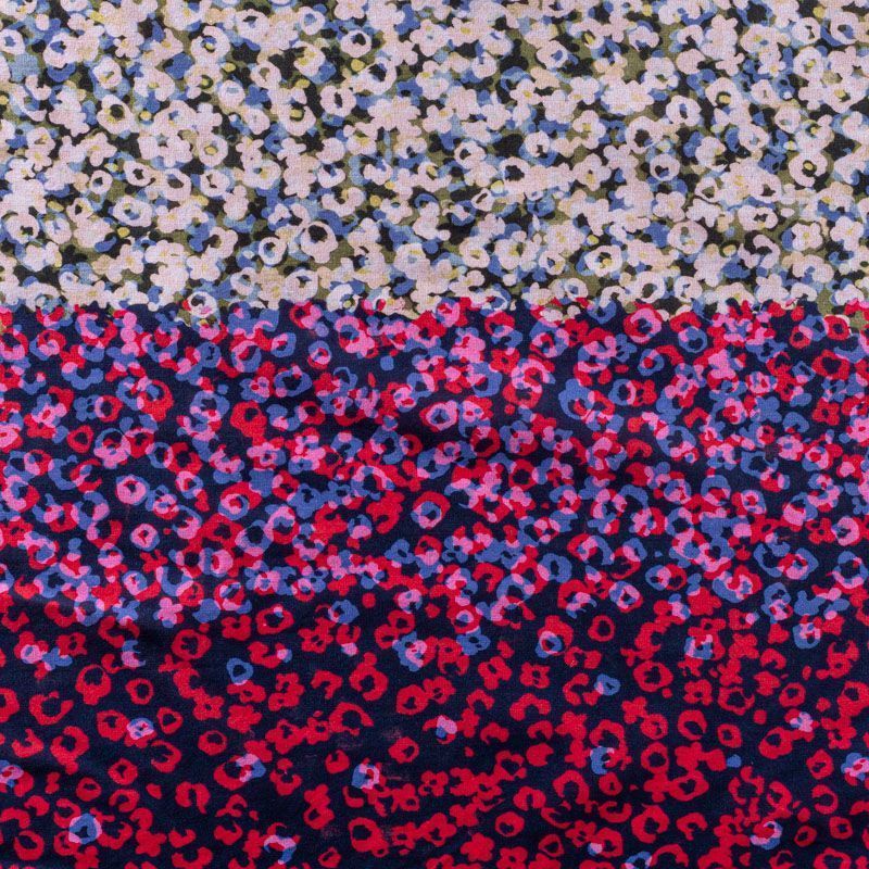 Итальянский хлопковый батист с мелким цветочным акварельным принтом на нежном розовом фоне, по нижнем кромке расположена полоса в аналогичным принтом, выполненная в красно-синих тонах.  Ткань очень легкая, прозрачная, приятная на ощупь, нежная, пластичная, хорошо и мягко драпируется, летящая. Батист набирается на изделие объемом, подойдёт для модных блуз с объёмными рукавами, летних платьев и сарафанов с длинной летящей юбкой, прозрачных рубашек, декорированных объёмными бантами, туник и топов.