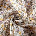 Итальянский хлопковый батист с мелким растительным принтом в желто-лавандовых оттенках на молочном фоне. Ткань очень легкая, прозрачная, приятная на ощупь, нежная, пластичная, хорошо и мягко драпируется, летящая. Батист подойдёт для модных блуз с объёмными рукавами, летних платьев и сарафанов с длинной летящей юбкой, прозрачных рубашек, декорированных объёмными бантами, туник и топов.