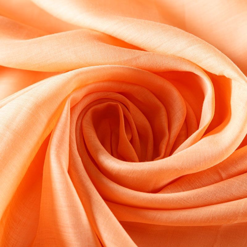 Итальянский хлопковый батист в оранжевом оттенке, тонкий, легкий, полупрозрачный, приятный на ощупь, нежный, хорошо и мягко драпируется, летящий. Батист подойдёт для модных блуз с объёмными рукавами, летних платьев и сарафанов с длинной летящей юбкой, прозрачных рубашек, декорированных объёмными бантами, детской одежды.