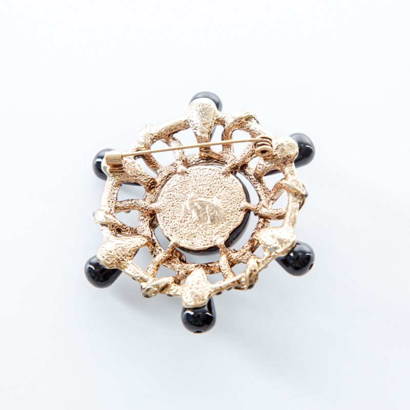 Брошь декоративная d60 мм стразы ACS0479 золотой/черный в Великих Луках