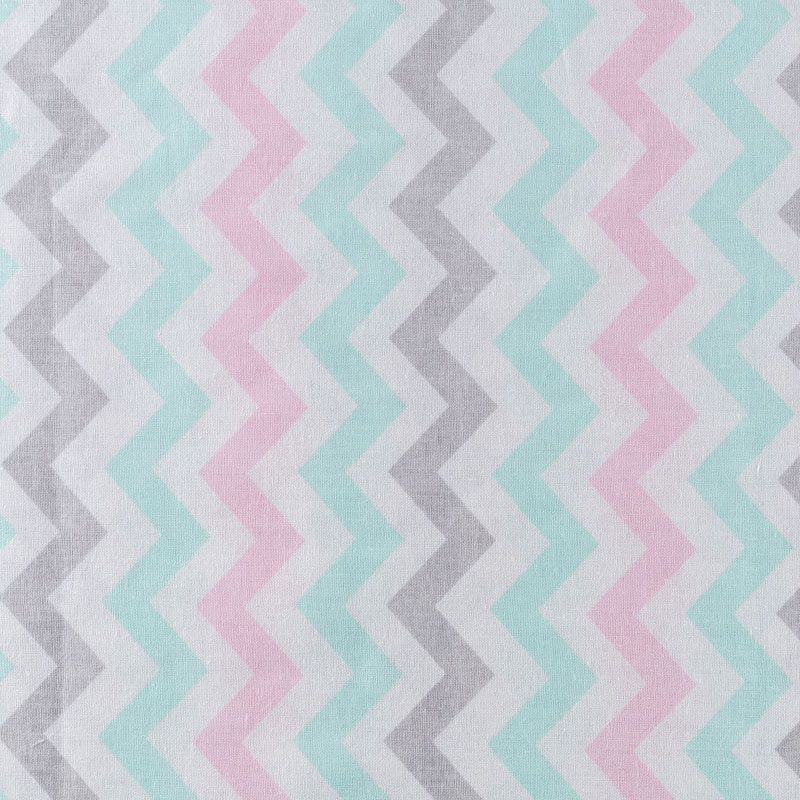 Плотная натуральная ткань с особым принципом переплетения нитей: крест-накрест. Имеет гладкую матовую поверхность чуть шероховатую на ощупь, не тянется, немного просвечивает. Прочная и стойкая к износу, надолго сохраняет яркость красок, не растягивается при стирке, практически не мнется. Нежный принт в пастельных тонах в виде зигзага на белом фоне прекрасно подойдет для пошива постельного белья, изготовления пеленок, бортиков для кроватки и других предметов домашней одежды и интерьера.