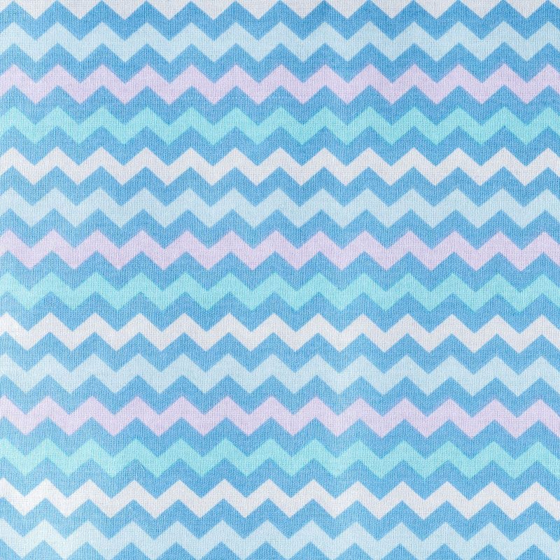 Плотная натуральная ткань с особым принципом переплетения нитей: крест-накрест. Имеет гладкую матовую поверхность чуть шероховатую на ощупь, не тянется, немного просвечивает. Прочная и стойкая к износу, надолго сохраняет яркость красок, не растягивается при стирке, практически не мнется. Цветной принт в виде чередующихся полос в форме зигзага на белом фоне прекрасно подойдет для пошива постельного белья, изготовления пеленок, бортиков для кроватки и других предметов домашней одежды и интерьера.