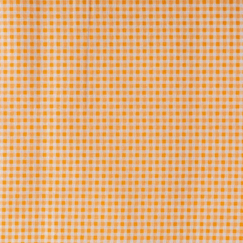 Плотная натуральная ткань с особым принципом переплетения нитей: крест-накрест. Имеет гладкую матовую поверхность чуть шероховатую на ощупь, не тянется, немного просвечивает. Прочная и стойкая к износу, надолго сохраняет яркость красок, не растягивается при стирке, практически не мнется. Рисунок в мелкую клеточку на фоне цвета спелого апельсина прекрасно подойдет для пошива постельного белья, изготовления пеленок, бортиков для кроватки, домашней одежды и других предметов интерьера.
