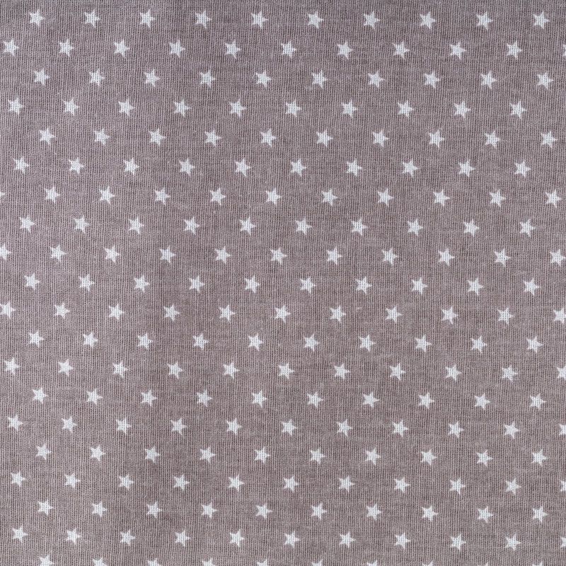Плотная натуральная ткань с особым принципом переплетения нитей: крест-накрест. Имеет гладкую матовую поверхность чуть шероховатую на ощупь, не тянется, немного просвечивает. Прочная и стойкая к износу, надолго сохраняет яркость красок, не растягивается при стирке, практически не мнется. Принт в виде мелких белых звездочек на фоне серо-бежевого оттенка прекрасно подойдет для пошива постельного белья, изготовления пеленок, бортиков для кроватки, домашней одежды и других предметов интерьера.