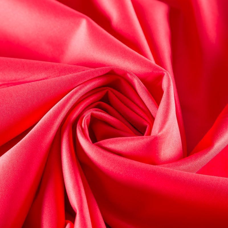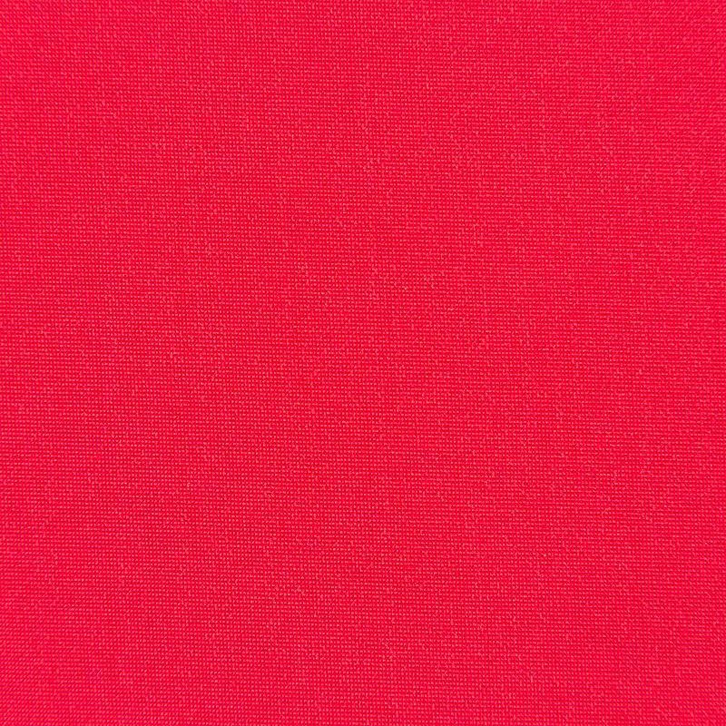 Плотное трикотажное полотно красного оттенка с малиновым подтоном. Обе стороны ткани ровные, гладкие. Материал эластичный, имеет растяжимость по всем сторонам, хорошо держит форму, уютный, приятный к телу и удобный в носке. Применяется в пошиве платьев, юбок, костюмов, жакетов.