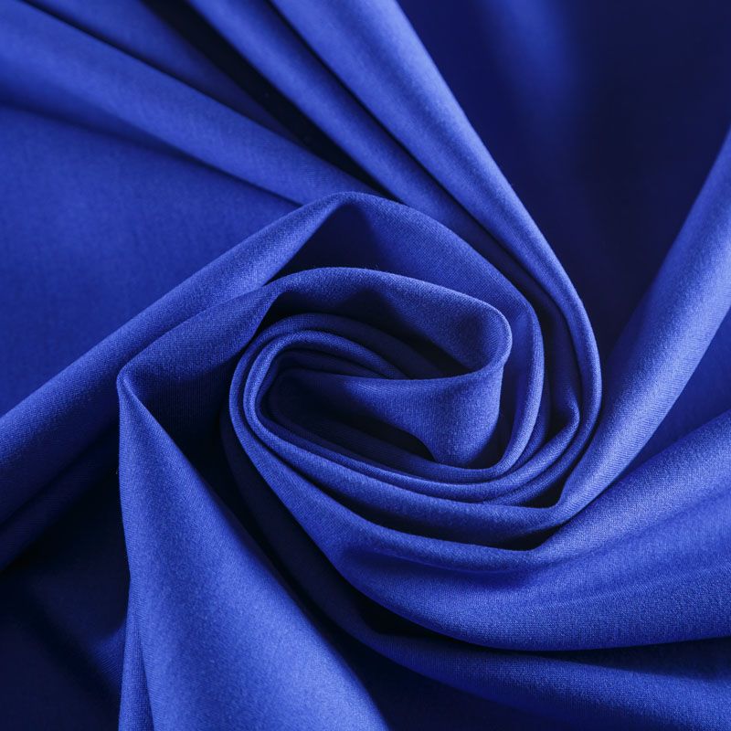 Трикотажное полотно средней плотности. Обе стороны ткани ровные, гладкие. Материал эластичный, имеет растяжимость по всем сторонам, держит форму, уютный, приятный к телу и удобный в носке. Применяется в пошиве платьев, юбок, костюмов, жакетов.