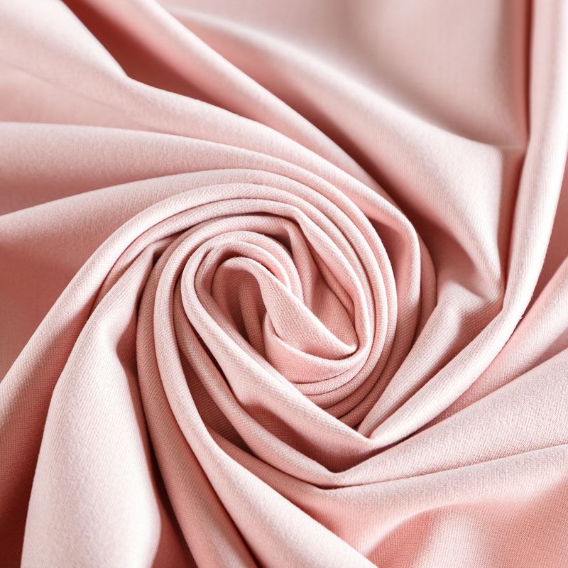 Вискозное трикотажное полотно средней плотности. Обе стороны ткани ровные, гладкие. Материал эластичный, упругий, имеет растяжимость по всем сторонам, держит форму, уютный, приятный к телу и удобный в носке. Применяется в пошиве платьев, юбок, костюмов, жакетов.