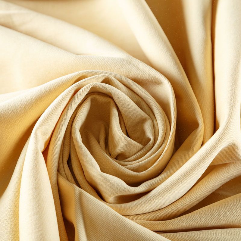 Поверхность ткани матовая, фактурная в диагональный рубчик. Материал имеет высокую плотность, при небольшой толщине, мягкий и приятный на ощупь, тянется за счет эластана в составе, обладает устойчивостью к истиранию и механическим повреждениям. Подойдет для пошива рубашек, сарафанов, платьев, юбок, шорт, брюк-джоггеров, лёгких курток и жакетов.