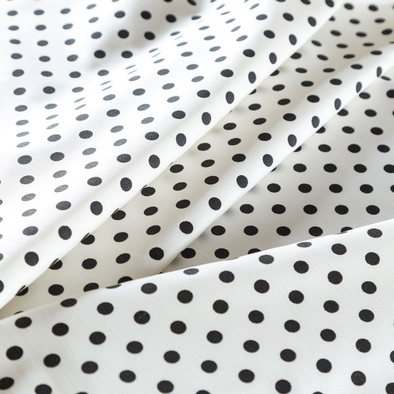 Итальянская джинсовая ткань молочного оттенка в черный горох. Материал имеет среднюю плотность, при небольшой толщине, мягкий и приятный на ощупь, эластичный, обладает устойчивостью к истиранию и механическим повреждениям. Подойдет для пошива рубашек, сарафанов, платьев, юбок, шорт, брюк-джоггеров, лёгких курток и жакетов.