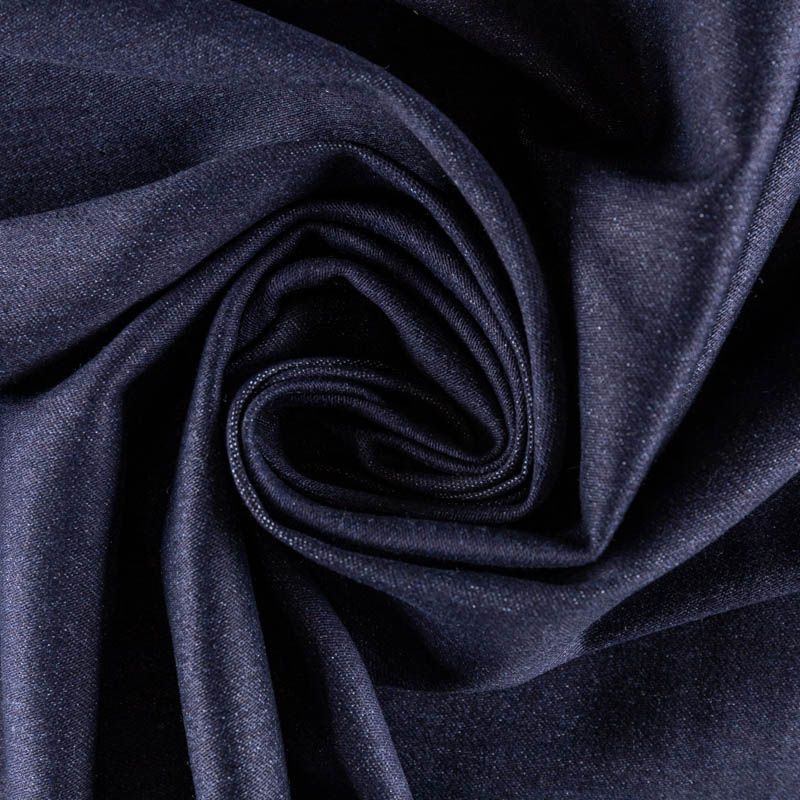 Плотная джинсовая ткань, деним соткан методом джинсового плетения, при котором окрашены только нити основы, а волокна утка - всегда белые. Так получается оригинальный разбеленный оттенок денима, который является особенностью джинсовых материалов. Материал имеет высокую плотность, при небольшой толщине, мягкий и приятный на ощупь, обладает устойчивостью к истиранию и механическим повреждениям, благодаря эластану в составе - тянется. Подойдет для пошива рубашек, сарафанов, платьев, юбок, шорт, брюк-джоггеров, лёгких курток и жакетов, а также одежды облегающих силуэтов.