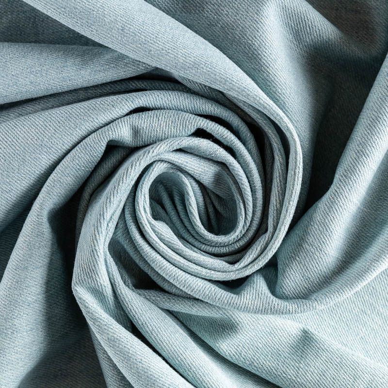Ткань плотная, хорошо держит форму, не много тянется, достаточно тяжелая, обладает устойчивостью к истиранию и механическим повреждениям. Подойдет для пошива классических джинсовых брюк, платья, сарафана, жакета и костюма, куртки и плаща.