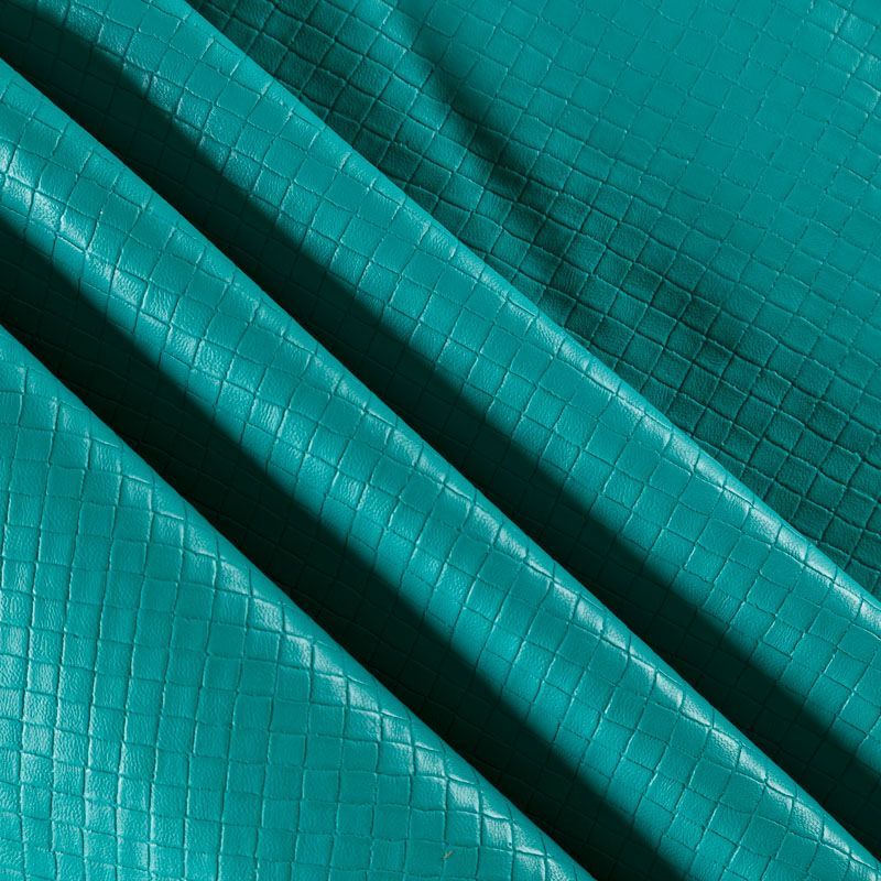 Экокожа в зеленом оттенке с объемной фактурой, имитирующей плетенку. Очень приятная на ощупь, пластичная. Подойдет для пошива платья, брюк, шорт, юбки, куртки, плаща, пальто-рубашки, а также сумки, рюкзака и других аксессуаров.