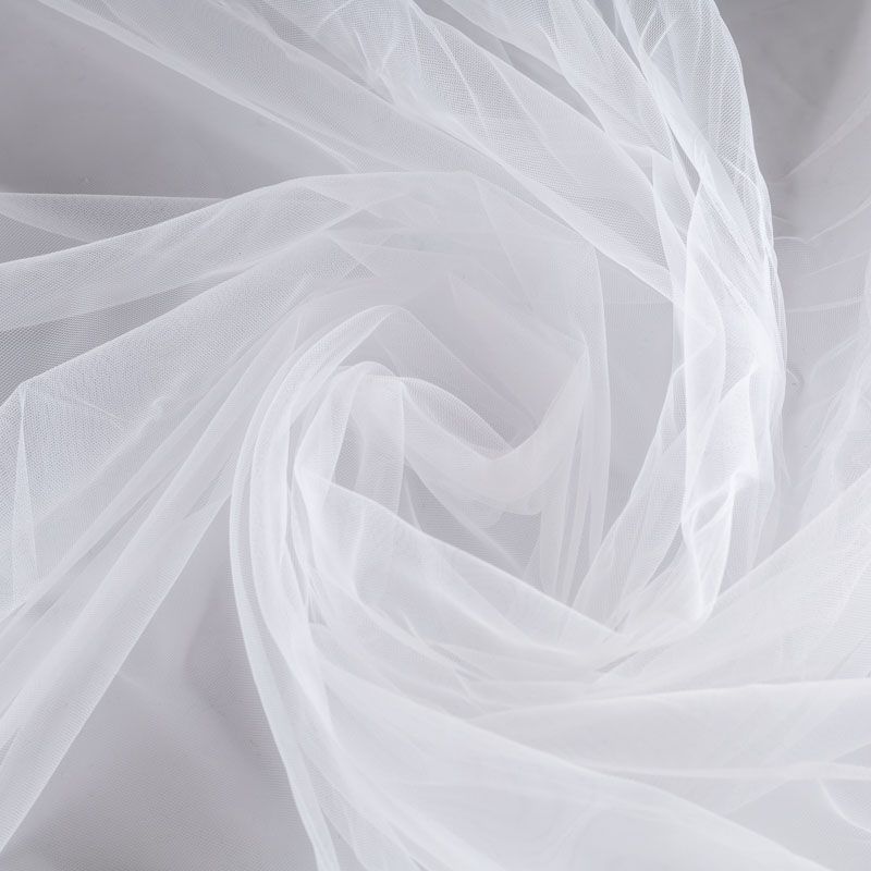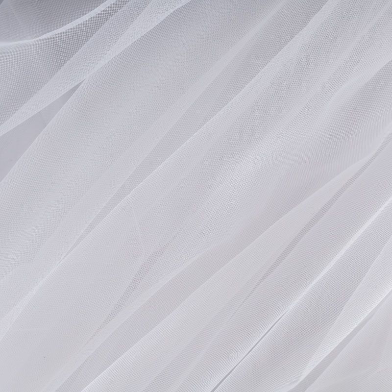 Итальянский еврофатин - мягкий и матовый. Неплохо драпируется в  слегка держащие форму складки, имеет мелкое сетчатое плетение, прияный на ощупь, растягивается в ширину. Подойдет для пошива платья, юбки-пачки, фаты и других коктейльных и вечерних нарядов.