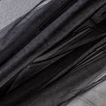 Мягкий фатин с матовой поверхностью. Неплохо драпируется в  слегка держащие форму складки, имеет мелкое сетчатое плетение, прияный на ощупь, растягивается в ширину. Подойдет для пошива платья, юбки-пачки, фаты и других коктейльных и вечерних нарядов.