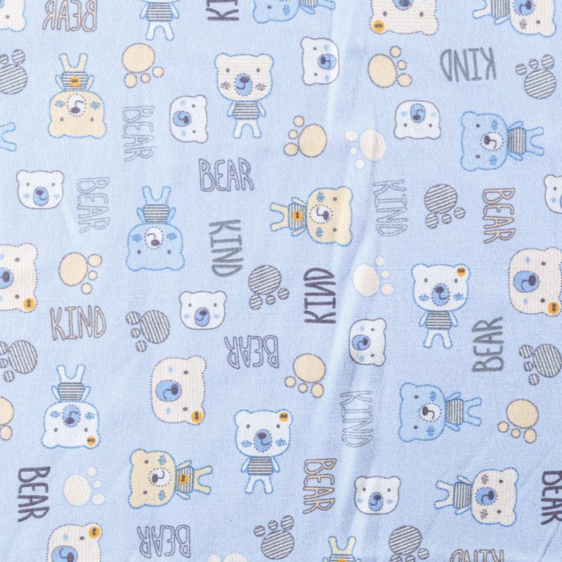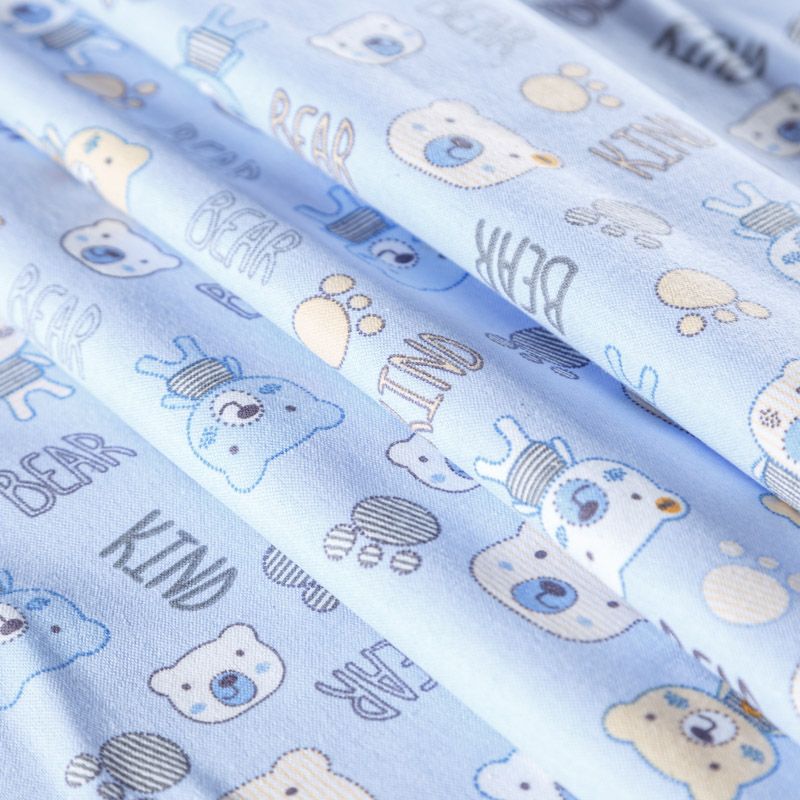 Износостойкий мягкий материал, не раздражает кожу, не садится, отлично впитывает влагу и хорошо удерживает тепло. На лицевой стороне мягкий ворс. Милый детский принт прекрасно подойдет для пошива постельного белья, изготовления пеленок, бортиков для кроватки, домашней одежды, пижамы и других предметов интерьера.