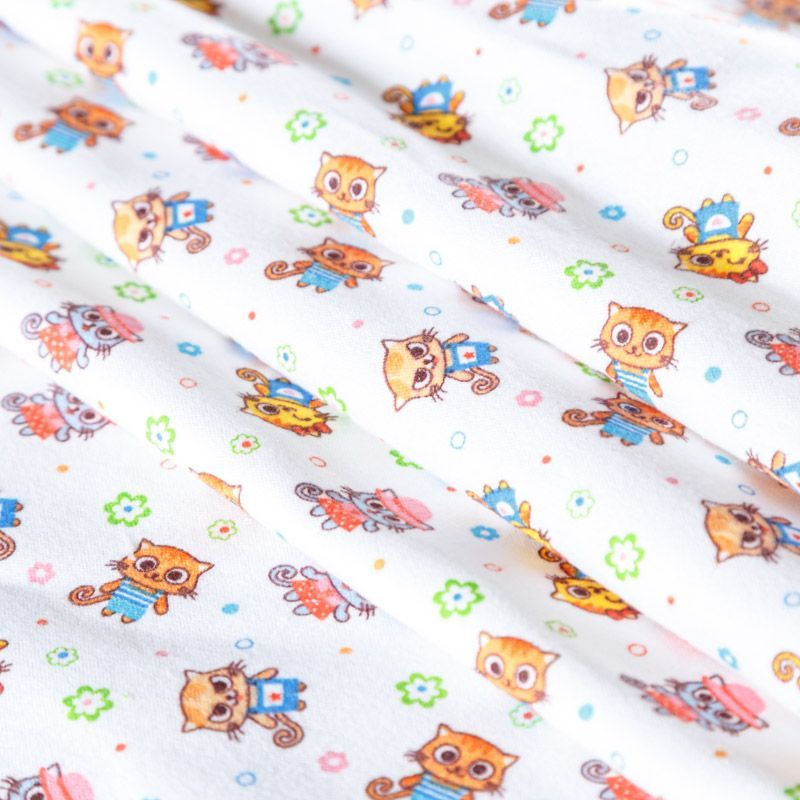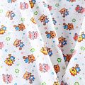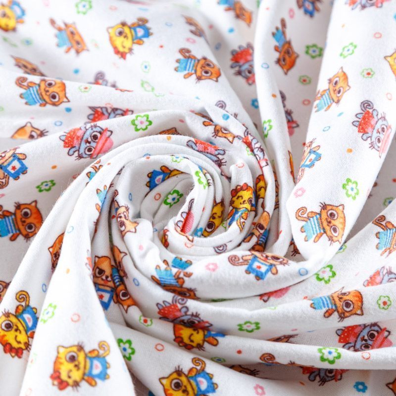 Износостойкий мягкий материал, не раздражает кожу, не садится, отлично впитывает влагу и хорошо удерживает тепло. На лицевой стороне мягкий ворс. Милый детский принт прекрасно подойдет для пошива постельного белья, изготовления пеленок, бортиков для кроватки, домашней одежды, пижамы и других предметов интерьера.