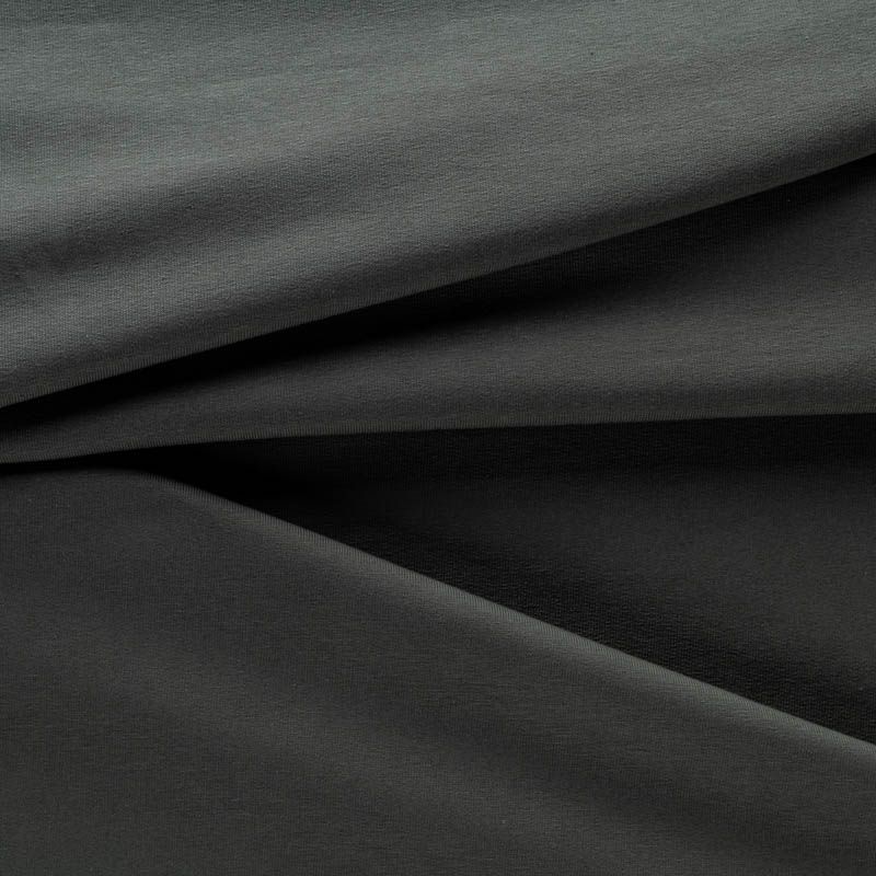 Трикотажное полотно средней плотности и пластичности. Лицевая сторона гладкая, изнанка с петельчатой структурой. На ощупь материал очень мягкий, приятный к телу. Прекрасный вариант для пошива спортивных костюмов, свитшотов, кардигана, платья, топа или жакета.