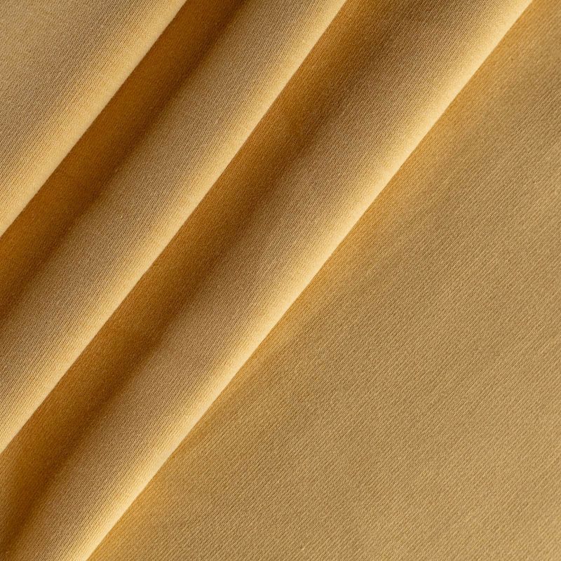 Плотный, но мягкий эластичный трикотаж. Лицевая сторона гладкая, без блеска, мелкой вязки. Изнанка – с небольшим однородным ворсом или петля. Прекрасный вариант для пошива платьев и костюмов, легких толстовок, свитшотов, спортивной, детской и  домашней одежды.