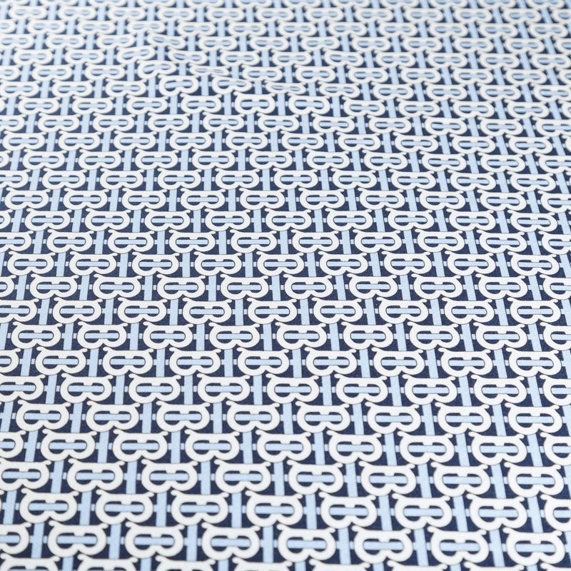 Итальянский брендовый футер с искусным лого-принтом на темно-синем фоне. Материал гладкий с лицевой стороны, с изнаночной стороны имеет нежную мелкую петельчатую текстуру. Ткань мягкая и комфортная, достаточно эластичная, пластичная. Хорошо садится по фигуре. Практически не мнется. После растягивания быстро возвращается к прежней форме. Подойдет для пошива толстовки, спортивного костюма, свитшота, платья в спортивном стиле.