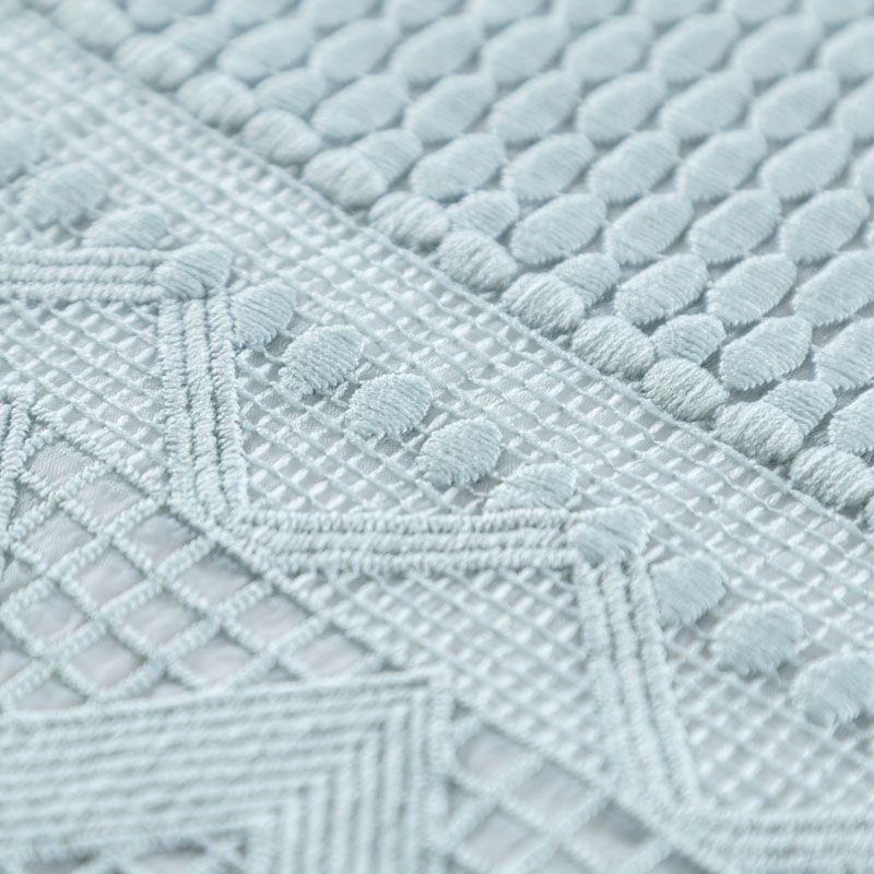 Итальянский гипюр-макраме серо-голубого оттенка на основе из органзы представляет собой полотно с рельефной текстурой с геометрическим ажурным плетением по всей ширине. Материал прозрачный на теле и на просвет, требуется подклад. За счет основы отлично держит форму. Всегда актуален при создании утончённых и роскошных нарядов, придавая им дороговизны и оригинальности. Может использоваться для пошива платьев, сарафана, костюма прямого кроя, топа, легкого кардигана, изготовления декоративных элеметов. На изделие набирается объемом.