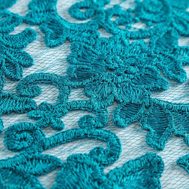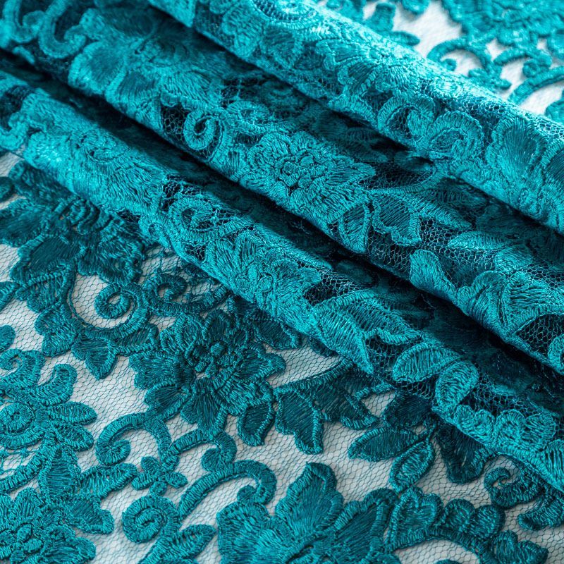 Кружевное полотно без тканной основы с цветочным ажурным плетением по всей ширине и фестонами по обе стороны кромок. Материал прозрачный на теле и на просвет, в вышивку красиво вплетена кордовая нить, которая придает текстуру, с матовым благородным блеском. Великолепно будет смотреться в нарядном вечернем, свадебном платье, платье на выпускной бал, в юбках, блузках, топах. Также можно применять отдельные элементы для декора, которые вырезаются из полотна. Набирается на изделие объемом.
