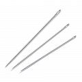 Длинные и полудлинные швейные иглы выполнены из закаленной стали и имеют выштампованное без грата золотое ушко. Их тонкая и узко ошлифованная форма острия и гладкая поверхность с покрытием без пор позволяют хорошо проходить через все ткани. Согласованная пружинная твердость обеспечивает гибкость работы без деформации и поломок, даже в случае тончайших игл. Головка иглы сформирована так, что иглы можно без проблем проводить также без наперстка. Как правило, длинные швейные иглы прим. на 7 мм длиннее, чем соответствующие полудлинные иглы, и используются для всех видов популярных швейных работ. Многие пользователи предпочитают длинные иглы за их большее удобство в руках. Полудлинные иглы напротив часто выбирают опытные пользователи для более сложных швейных работ, они полюбились из-за более быстрого протыкания.