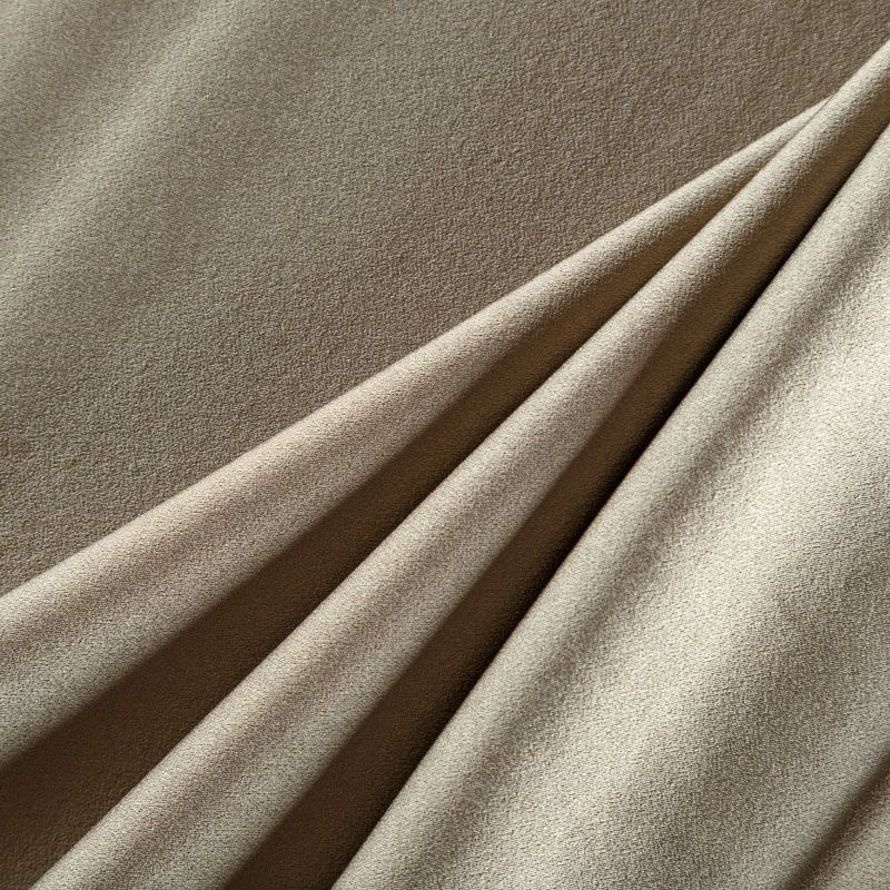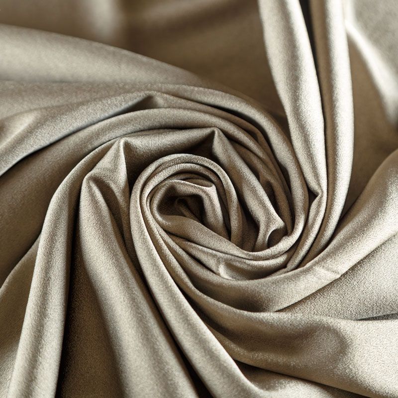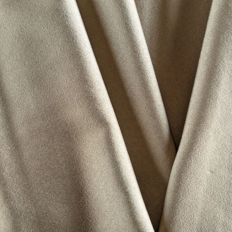 Итальянская ткань кади пепельно-коричневого оттенка. Кади — это креп-атлас с красивым глянцевым блеском. Ткань с плотной фактурой, роскошно ниспадает, очень хорошо тянется, изумительно садится по фигуре и шикарно смотрится в изделии. Она хорошо драпируется, эффектно облегает. Подходит для пошива удлиненных платьев с драпировками, платья-футляра, брюк палаццо, юбки-карандаш, жакета, туники, кроп-топа, а также для вечерних, свадебных и  выпускных платьев и костюмов.