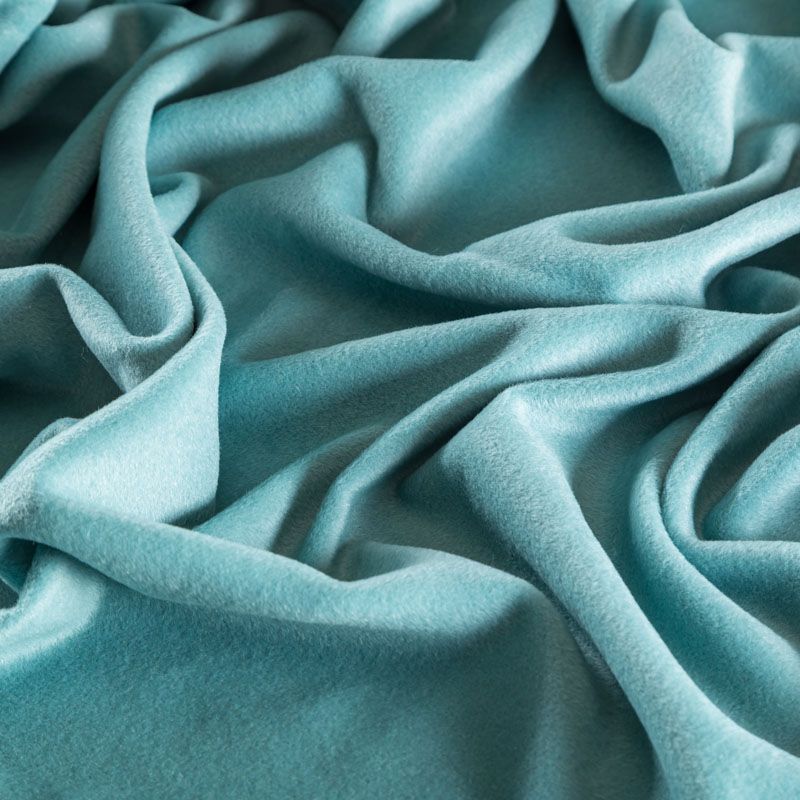 Итальянский пальтовый кашемир в ментоловом оттенке. Ткань мягкая, пластичная, приятная на ощупь, гибкая, средней толщины, при этом высокой плотности. Поверхность имеет короткий ворс. Подойдет для пошива пальто, куртки, жакета, парки, кейпа, жакета или пончо.