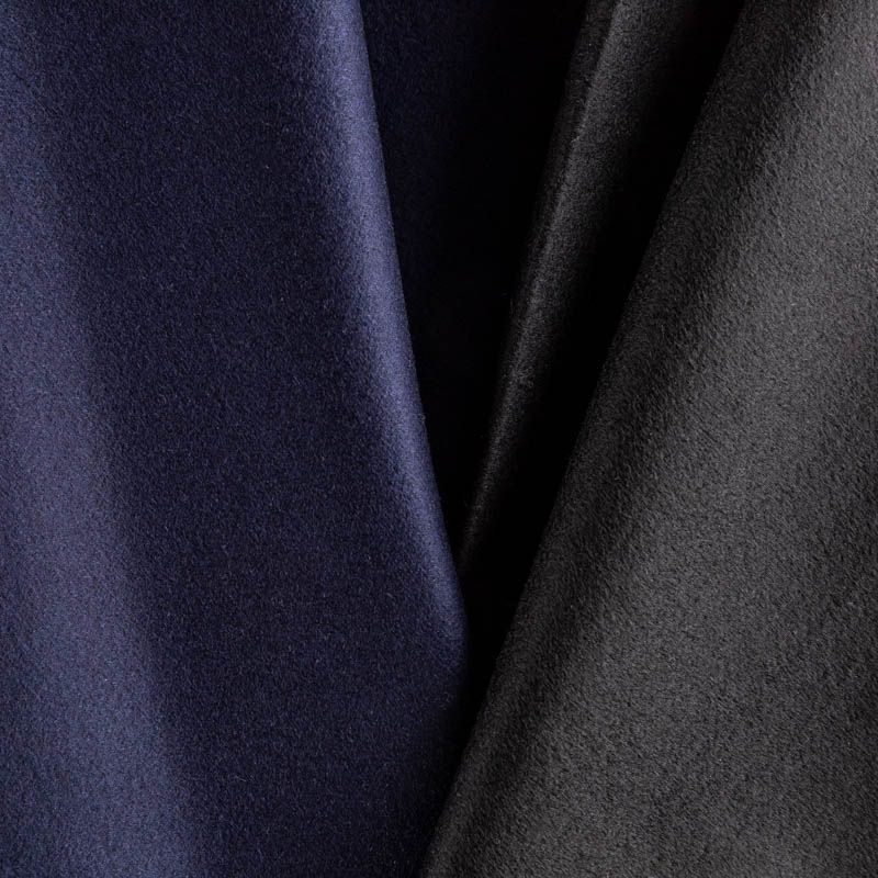 Пальтовый 2-х сторонний кашемир темно-синего оттенка. Вторая сторона черного цвета. Ткань необычайно мягкая, приятная на ощупь, гибкая, средней толщины. Поверхность имеет короткий ворс. Подойдет для пошива пальто, куртки, жакета, парки, кейпа, жакета или пончо.