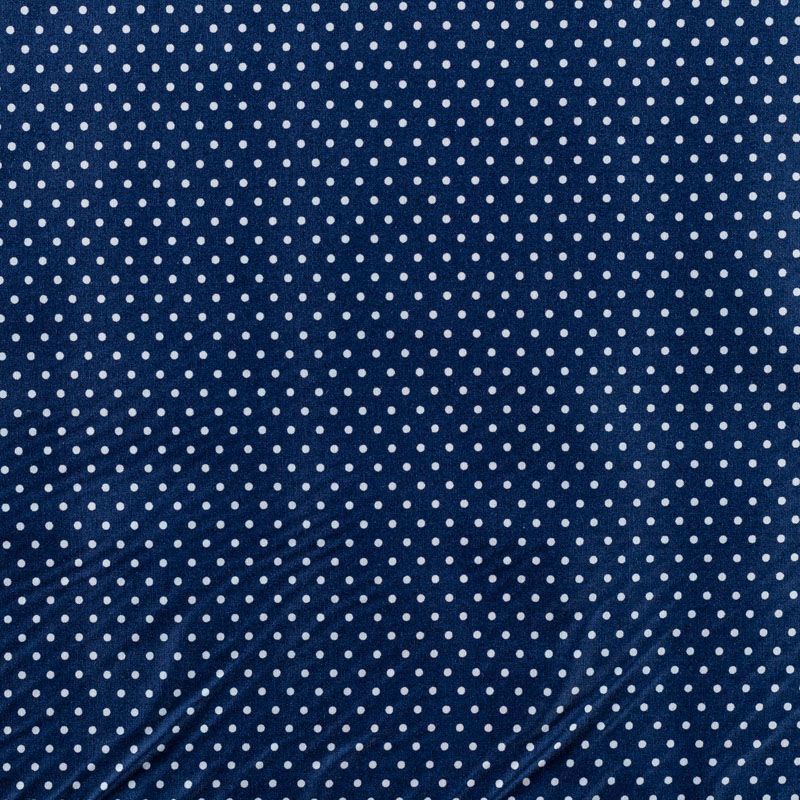 Плательно-блузочная ткань из натурального хлопка в мелкий горошек. Ткань легкая, тонкая, хорошо "дышит", мягкая, не прозрачная, немного тянется за счет эластана в составе. Подойдет для пошива летнего платья, летящей юбки, блузы, сарафана, комбинезона или рубашки.