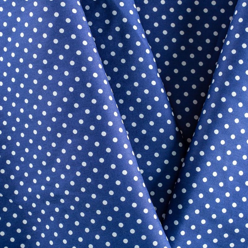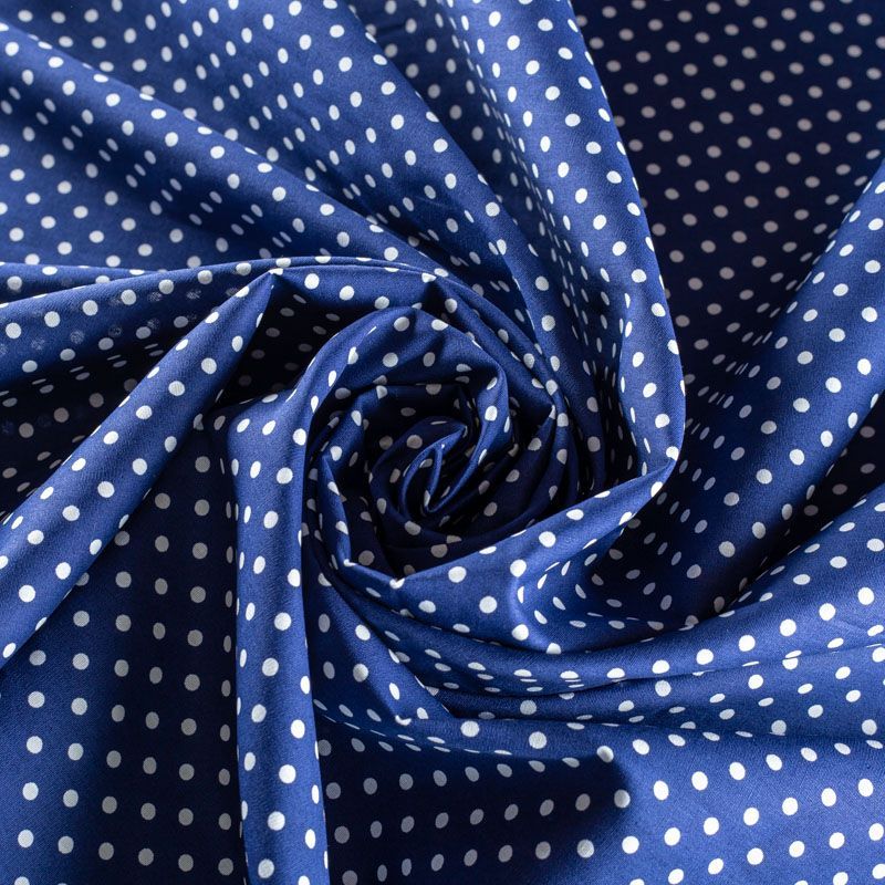 Плательно-блузочная ткань из натурального хлопка в белый горошек. Ткань легкая, тонкая, хорошо "дышит", мягкая, не прозрачная. Подойдет для пошива летнего платья, летящей юбки, блузы, сарафана, комбинезона или рубашки.