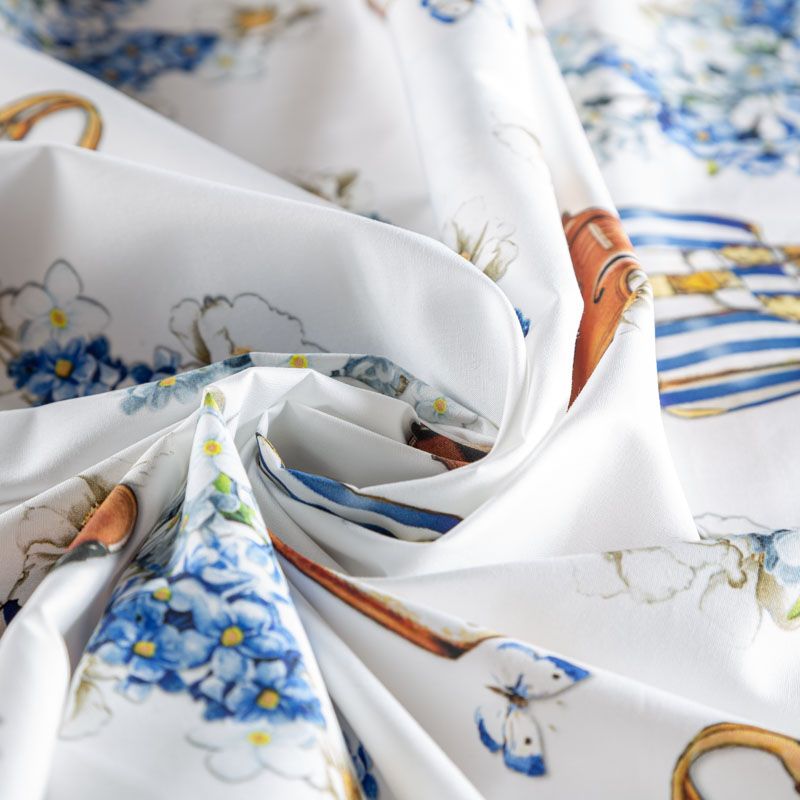 Плательно-рубашечный хлопок от бренда Monnalisa с круизным летним принтом в сине-голубых оттенках. Ткань пластичная, легкая, немного просвечивает, поверхность гладкая, приятная на ощупь. Подойдет для пошива платья, рубашек, платья-рубашки, юбки, сарафана, туники, комбинезона, домашней одежды.