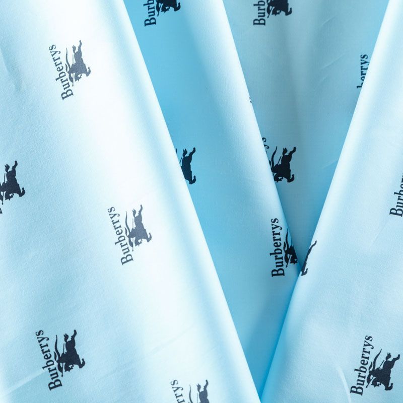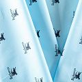 Плательно-блузочная ткань из натурального хлопка с принтом лого известного бренда в голубом оттенке. Ткань легкая, тонкая, хорошо "дышит", мягкая, тянется за счет эластана в составе. Подойдет для пошива летнего платья, летящей юбки, блузы, сарафана или рубашки.