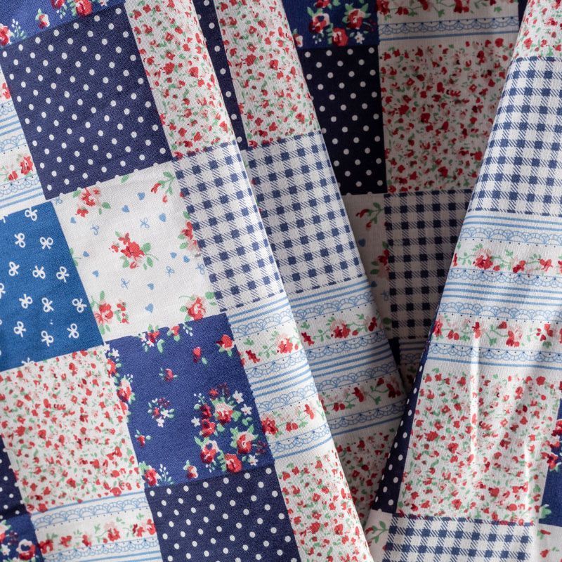 Ткань из натурального хлопка с рисунком в виде сшитых между собой разных лоскутков (печворк). Размер клетки 5*5 см. Ткань легкая, хорошо "дышит", мягкая, слегка прозрачная. Подойдет для пошива белья, рукоделия, печворка, изготовления предметов интерьера.