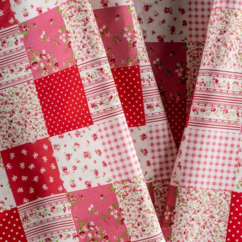 Ткань из натурального хлопка с рисунком в виде сшитых между собой разных лоскутков (печворк). Размер клетки 5*5 см. Ткань легкая, хорошо "дышит", мягкая, слегка прозрачная. Подойдет для пошива белья, рукоделия, печворка, изготовления предметов интерьера.