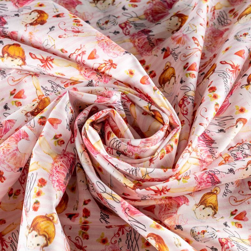 Итальянский натуральный хлопок с детским интересным девичьим рисунком в розовых тонах. Ткань легкая, тонкая, хорошо "дышит", мягкая, слегка прозрачная, по плотности напоминает батист. Подойдет для пошива домашней одежды, детских летних платьев, песочников, юбки, сарафана или рубашки, а также для для пошива постельных принадлежностей, подушек, покрывал, скрапбукинга, корзин и других видов творчества.