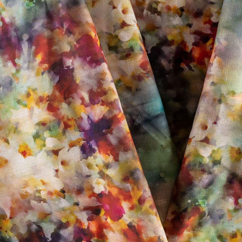 Плательно-блузочная ткань из натурального хлопка с крупным акварельным растительным рисунком в пастельных цветах. Ткань легкая, тонкая, хорошо "дышит", мягкая, слегка прозрачная, по плотности напоминает батист. Подойдет для пошива летнего платья, летящей юбки, блузы, сарафана или рубашки.