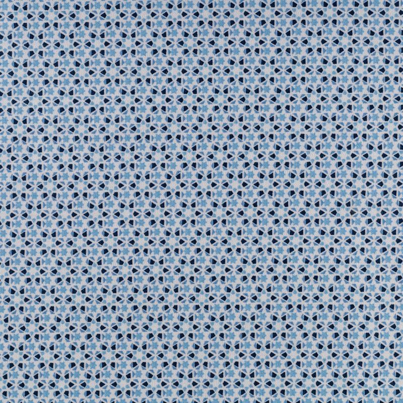 На белом фоне мелкий абстрактный геометрический рисунок сине-голубого цвета.