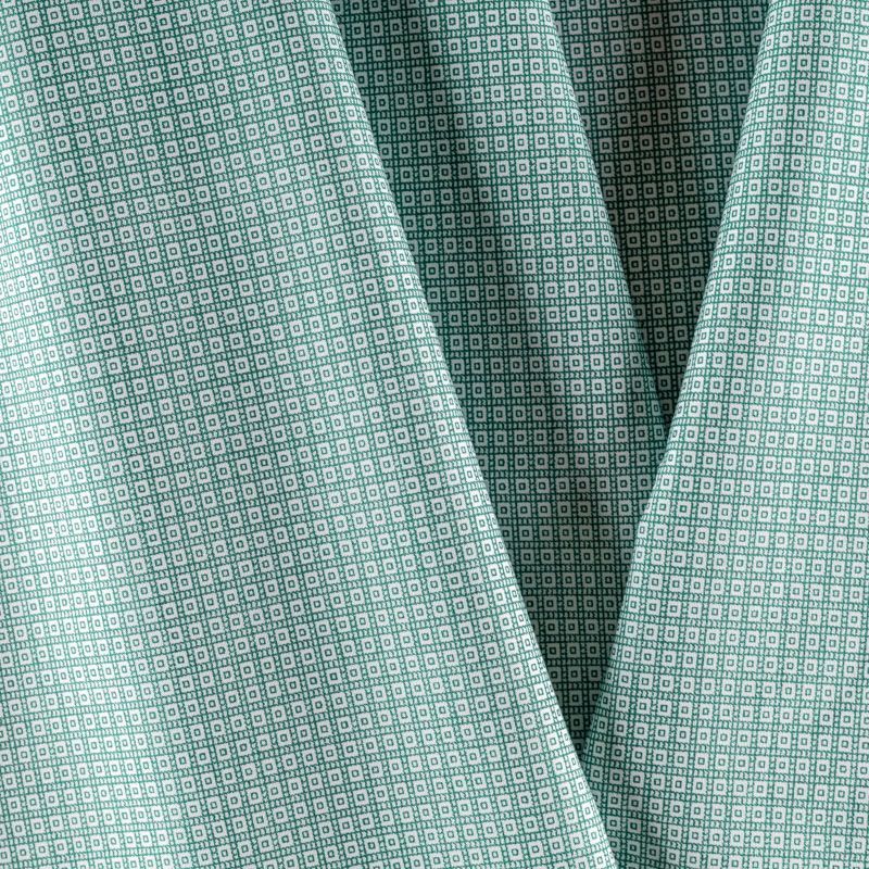 На белом фоне мелкий геометрический узор зеленого цвета.