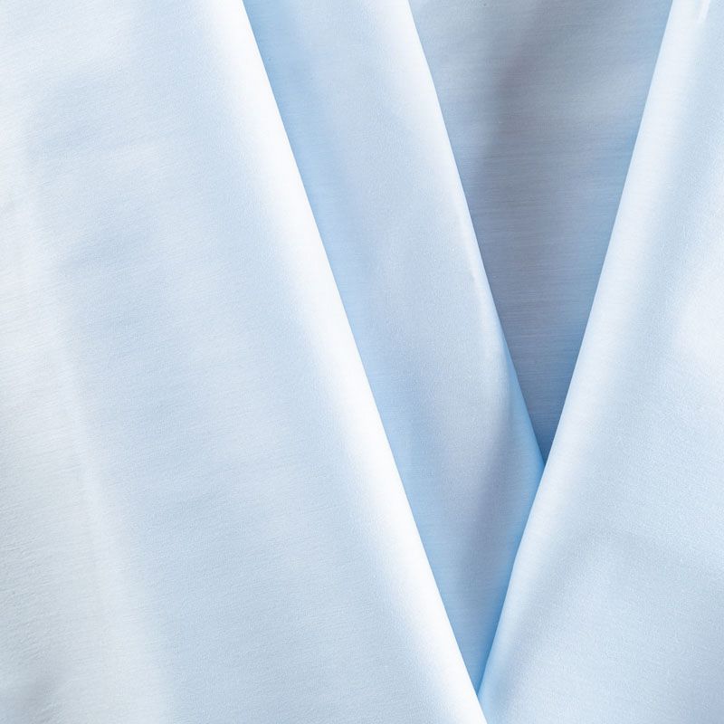Рубашечно-плательный хлопок разбеленного голубого оттенка. Полотно легкое, средней плотности, очень нежное и пластичное, не держит форму., тянется за счет эластана в составе. Материал отлично драпируется, формируя мягкие складки. Подойдет для прямых, расклешенных моделей платьев, сарафанов, а также юбки, туники, платье-рубашки, топа.